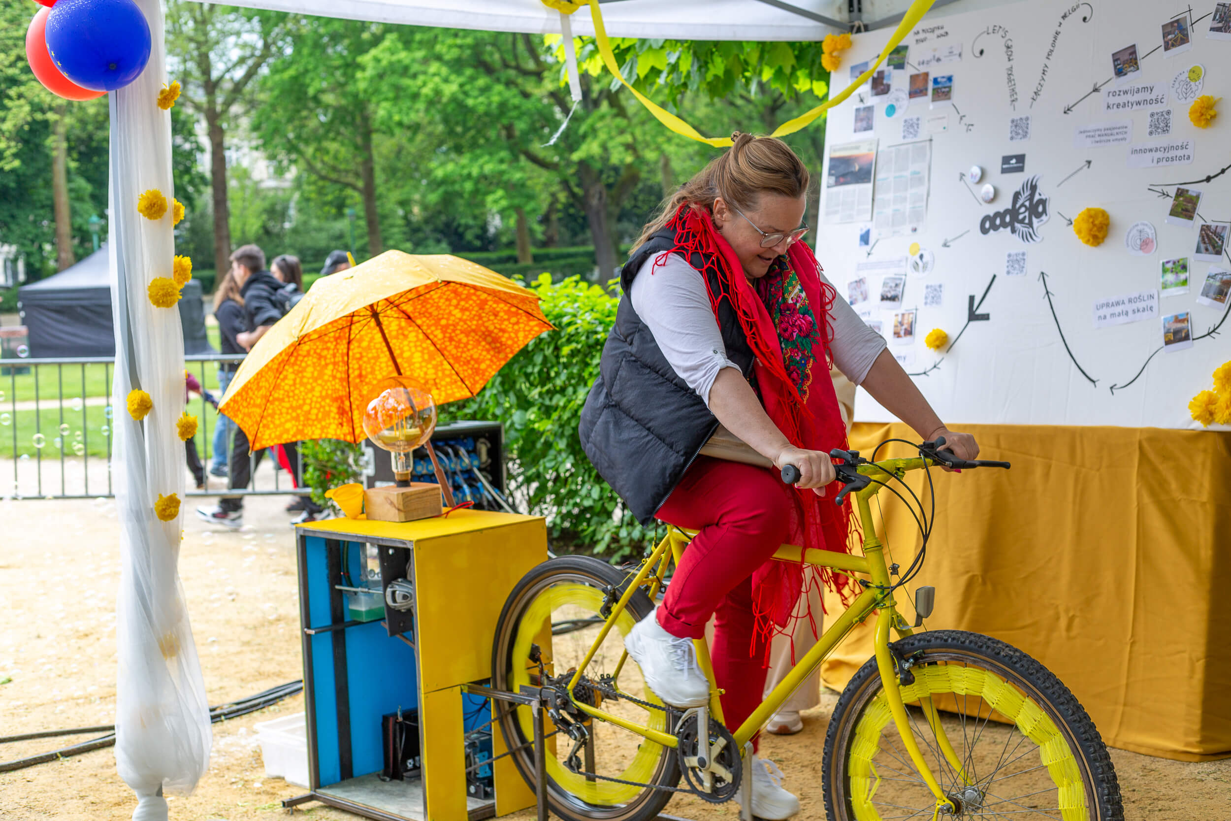 Un coin ludique et participatif, où les visiteurs pouvaient pédaler sur un vélo qui produisait des bulles.